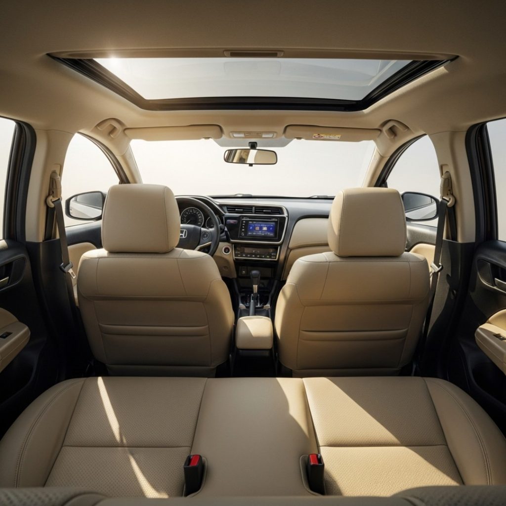 - The Sofa Seats: The front seats are wide and incredibly supportive. But the magic is in the back. The Rear Legroom is massive. You can cross your legs and sit like a boss. The seat cushioning is soft—perfect for Indian body types.